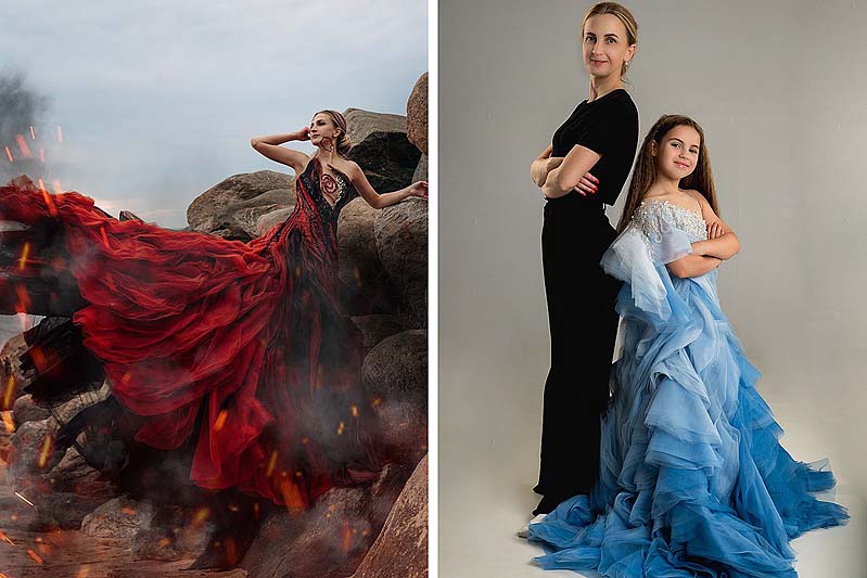 — Мне хотелось выйти на новый уровень, создавать особенные вещи на выход, – делится Елена Гукина. – Это требовало времени и сил. Днем я зарабатывала на хлеб и на ткани для своей коллекции – выполняла заказы на ремонты и пошивы, заботилась о детях, а по вечерам и ночам шила вечерние наряды. Конечно, сильно уставала. Но в душе чувствовала себя счастливой при виде той красоты, которая получалась в результате.
